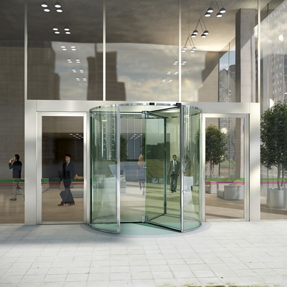 漂亮的全玻璃 ASSA ABLOY 必盛 RD300-3 和 ASSA ABLOY 必盛 RD300-4 旋转门。