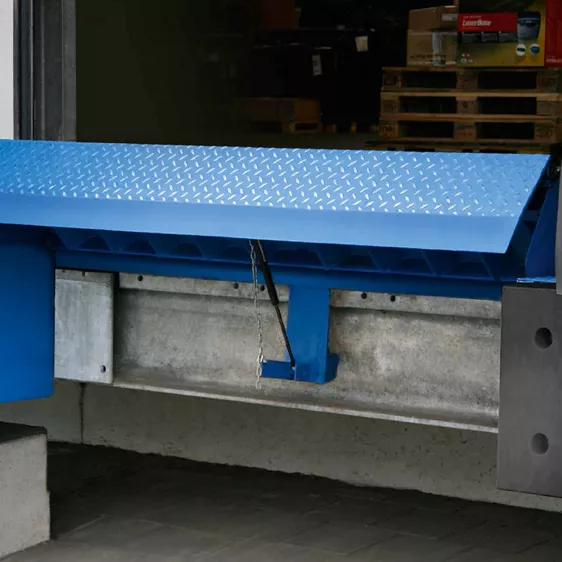 ASSA ABLOY 阔福 DL6010SM 翻转式迷你平台的舌板为钢质。舌板的形状非常平坦,可确保与月台边缘的后部连接不会碰撞,使建筑和卡车车厢之间的手动处理设备顺畅通过。